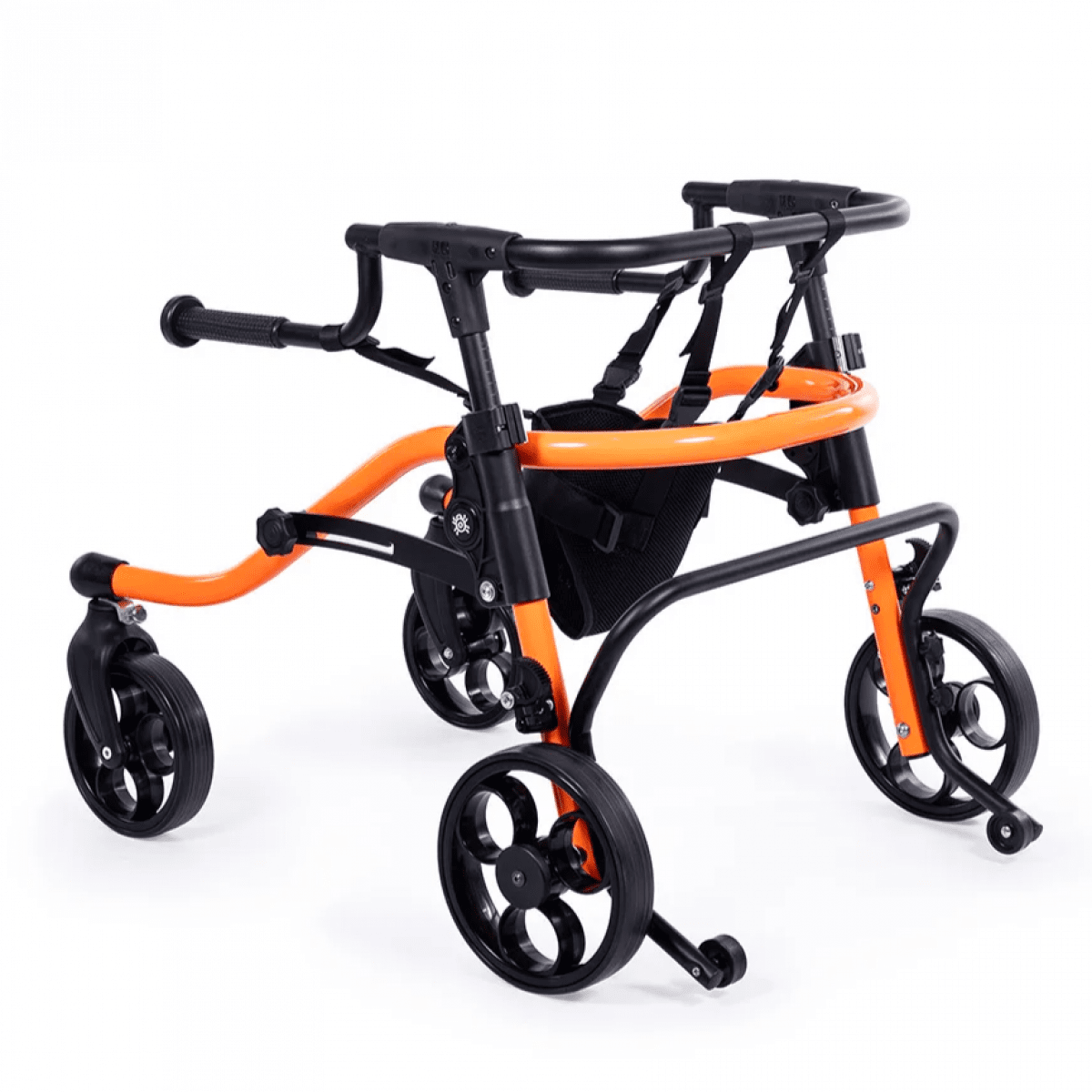 Продуманная колёсная система помогает контролировать движение. Передние колёса фиксируются по направлению, помогая ребёнку двигаться увереннее и спокойнее. Задние колёса оснащены регулируемым замедлителем — скорость движения можно настроить под возможности пользователя. Дополнительная защита от отката назад повышает безопасность и даёт ощущение надёжности во время занятий.