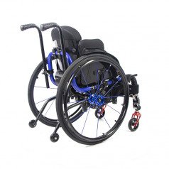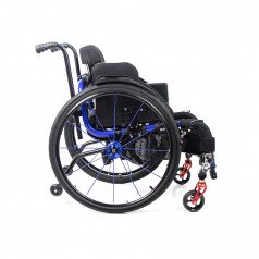 Коляска настраивается под пользователя: спинка регулируется по высоте, подножка — по положению, а задние колёса быстро снимаются для удобства транспортировки. Доступны разные варианты комплектации, что позволяет подобрать модель под задачи и предпочтения ребёнка.
