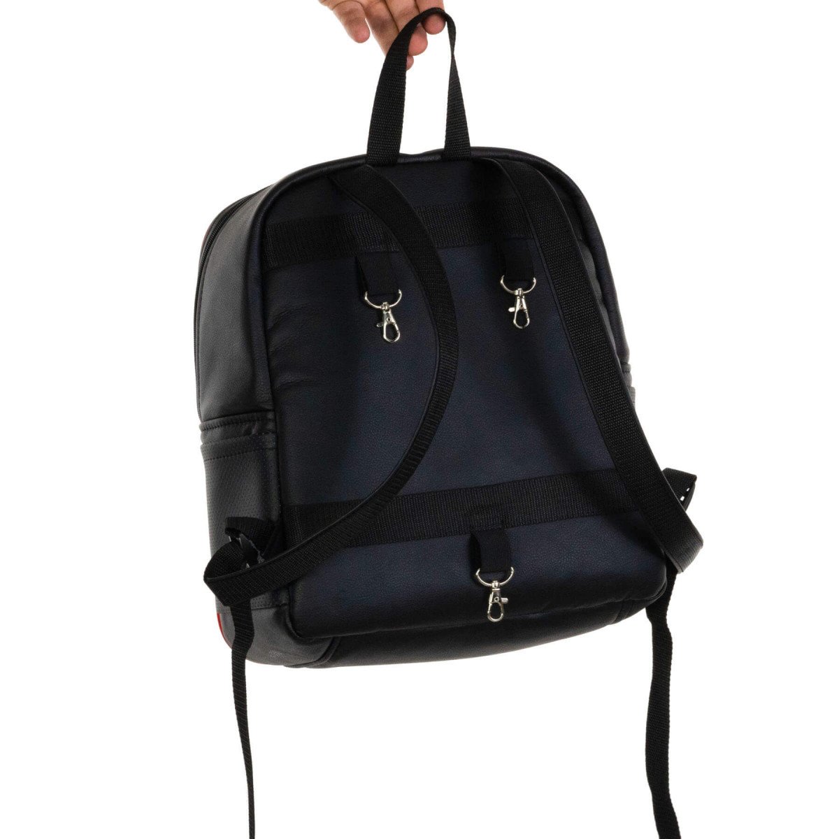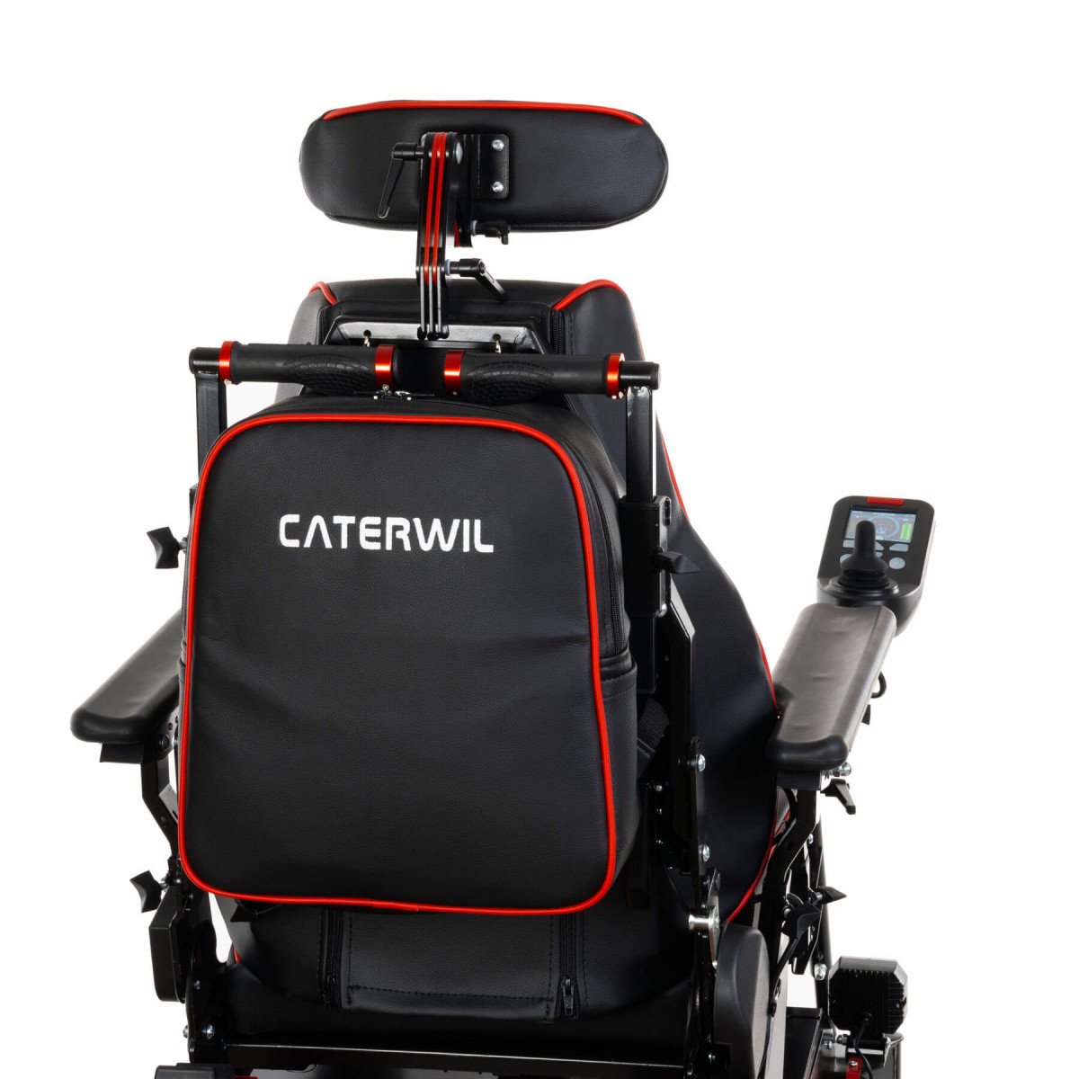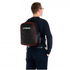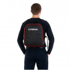 Особенностью модели являются широкие и надёжные регулируемые лямки, которые позволяют использовать рюкзак как обычный, удобный для носки аксессуар. Крепление осуществляется с помощью специальных карабинчиков, вставляемых в отверстия на обратной стороне спинки кресла, что обеспечивает надёжную фиксацию и долговечность. Рюкзак идеально подходит для моделей Caterwil GTS, не мешая работе гусениц, не провисает при наклоне кресла назад и сохраняет безопасность при подъёме по лестницам.