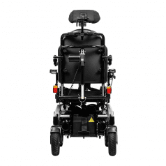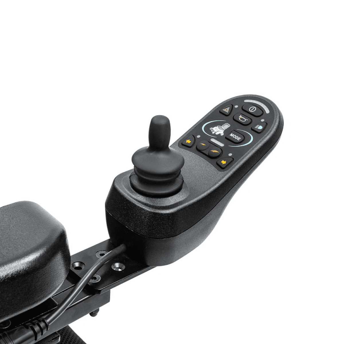 Коляска отличается продуманной системой комфорта: угол наклона спинки, подножек и сиденья регулируется с помощью электропривода, позволяя пользователю подобрать удобное положение для отдыха или активного движения. Эргономичная форма сиденья поддерживает правильную осанку и снижает нагрузку при длительном использовании.
