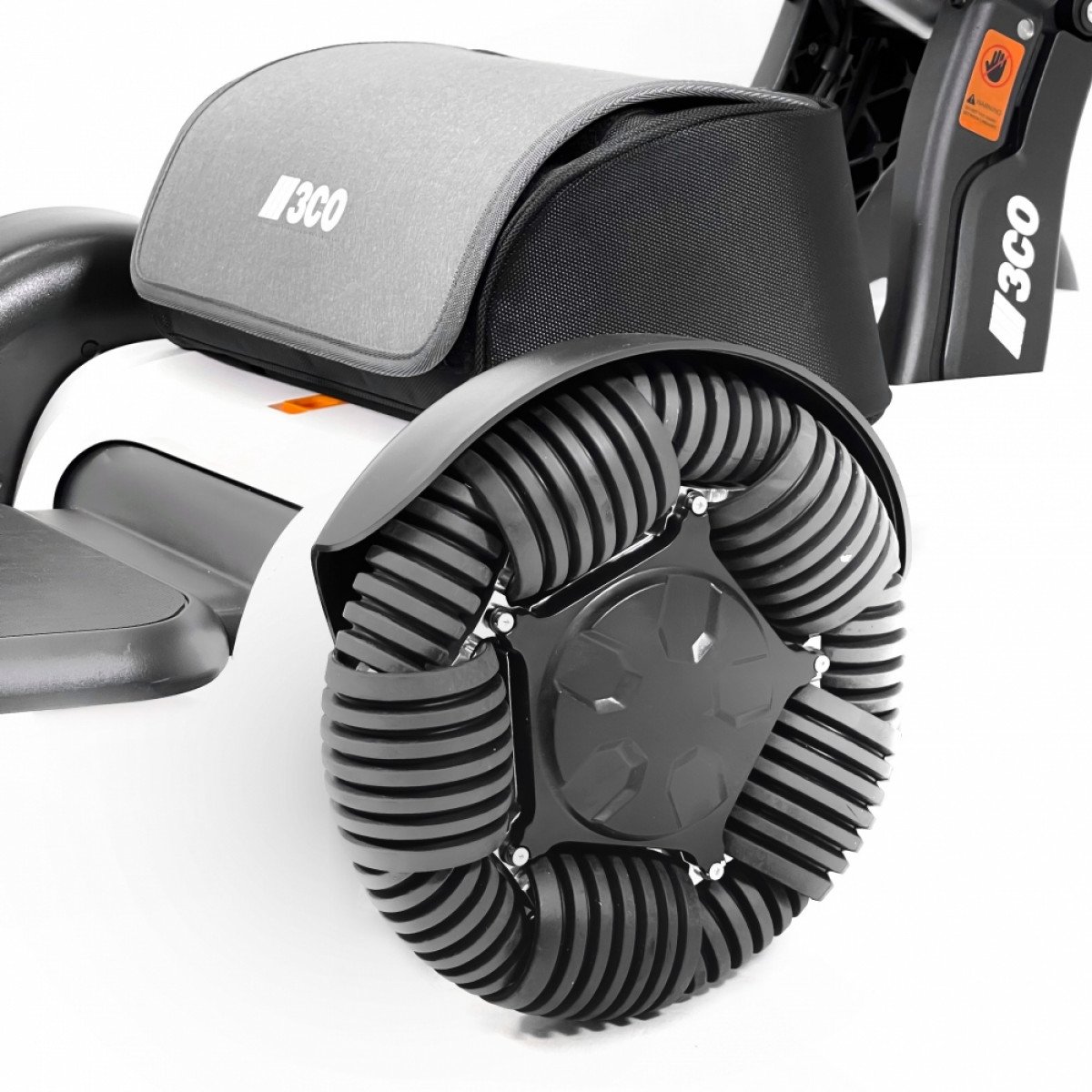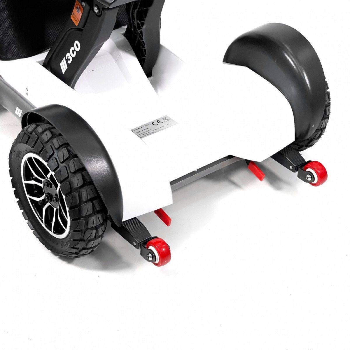 Рама выполнена из прочного алюминия с защитой от коррозии, что обеспечивает надёжность при ежедневной эксплуатации. В сложенном виде коляска занимает минимум места и помещается в багажник автомобиля. Управление осуществляется манипулятором, который можно установить под удобную руку, а через мобильное приложение доступны дополнительные функции контроля. В комплект входит зарядное устройство и всё необходимое для использования.