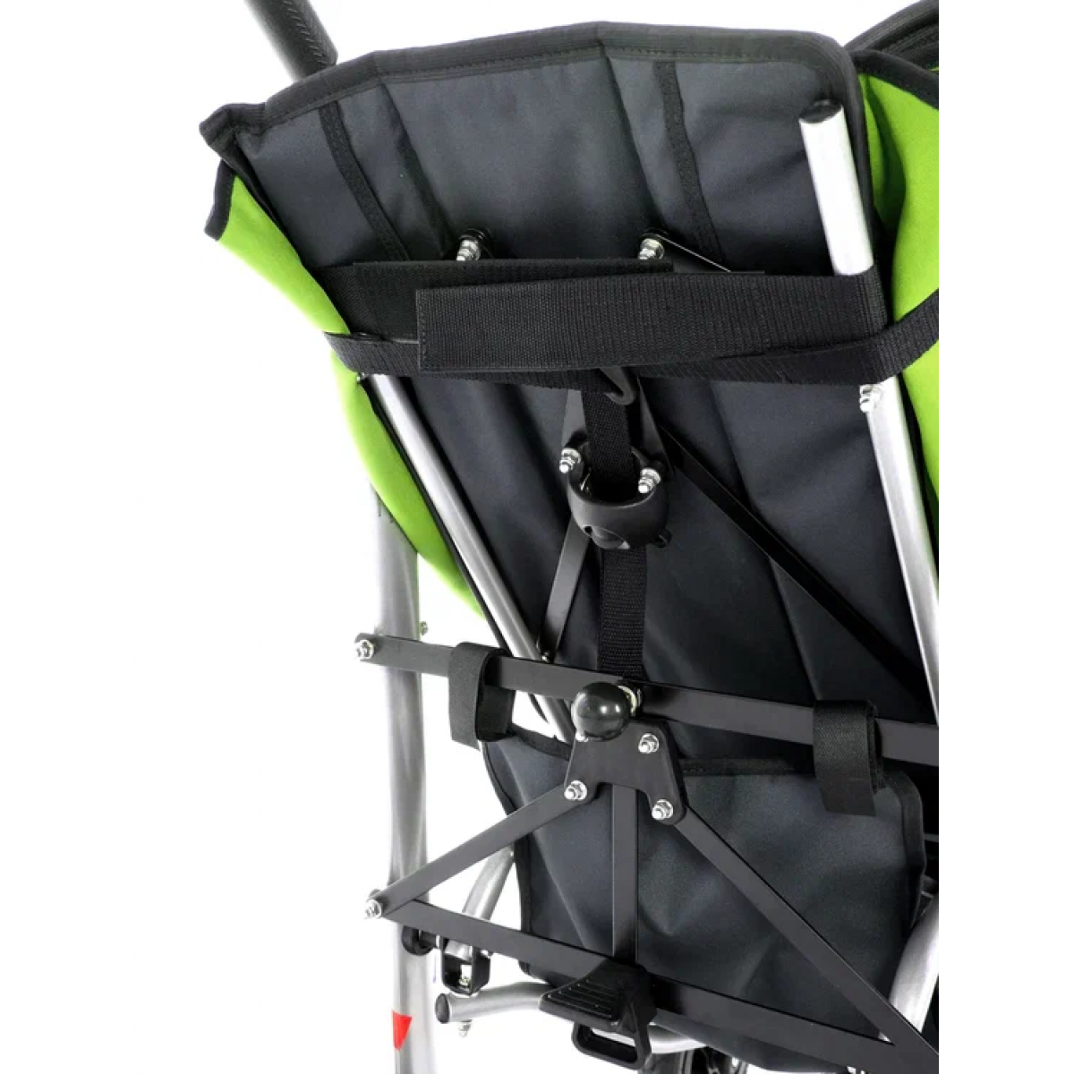 Коляска легко адаптируется под ребёнка: спинка регулируется по углу наклона, есть подголовник с фиксацией, боковые поддержки и абдуктор для правильного положения тела. Сиденье выполнено из прочного материала со съёмной обивкой — за ним проще ухаживать. Подножки регулируются по длине и оснащены ремнями для фиксации ног.