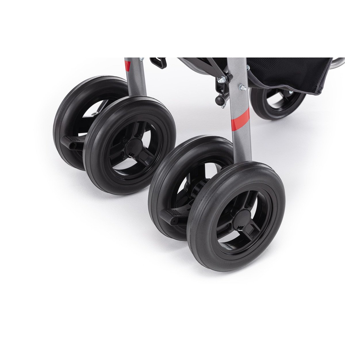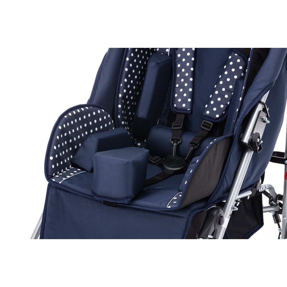 Коляска хорошо маневрирует и легко управляется благодаря поворотным колёсам. Спинка плавно регулируется, позволяя выбрать комфортное положение — от активного сидения до отдыха. Подножка подстраивается под рост ребёнка, а абдуктор помогает удерживать правильное положение таза. Все элементы поддержки продуманы так, чтобы снизить нагрузку и обеспечить стабильную посадку.