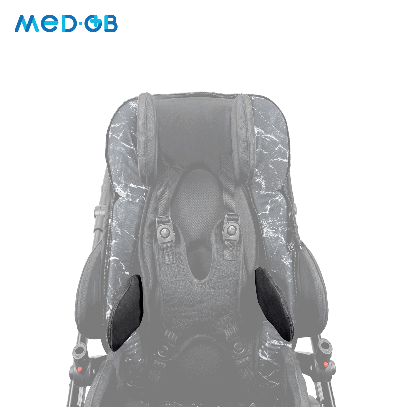 В Rico Buggy сиденье съёмное и может устанавливаться как в направлении движения, так и против. Оно может изменяться в ширине и глубине, что позволяет обеспечить поддержку бёдер по всей длине, даже если у ребенка есть разница в длине ног до 10 см. Это делает коляску уникальной и адаптируемой под различные потребности и анатомические особенности ребёнка. Система поддержки поясницы позволяет регулировать форму спинки сиденья, что особенно полезно при искривлениях поясничного отдела позвоночника. Коляска оснащена двумя съёмными боковыми упорами и мягким подголовником, которые обеспечивают необходимую поддержку головы. Спинка с поясничной опорой может регулироваться по высоте и углу наклона, что позволяет адаптировать коляску под рост и потребности ребёнка. Подножка регулируется в диапазоне от 0° до 90° по углу наклона и по высоте, обеспечивая правильное положение ног. Угол наклона платформы для стоп также регулируется от -20° до +20°. Эта функция позволяет сохранить правильный угол между бедром и голенью в 90°.