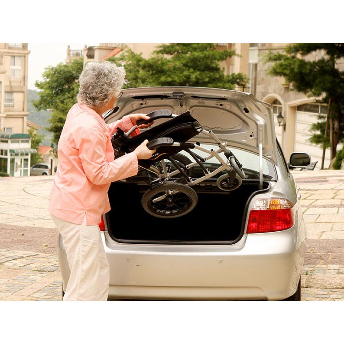 Рама выполнена из облегчённого алюминия — коляску легко сложить, перенести и разместить в багажнике. Продуманная система тормозов позволяет быстро зафиксировать коляску без лишних усилий: управление доступно прямо с ручек, что снижает нагрузку на спину сопровождающего. Это особенно удобно для пожилых людей или тех, кто сопровождает регулярно.