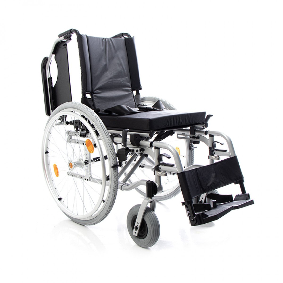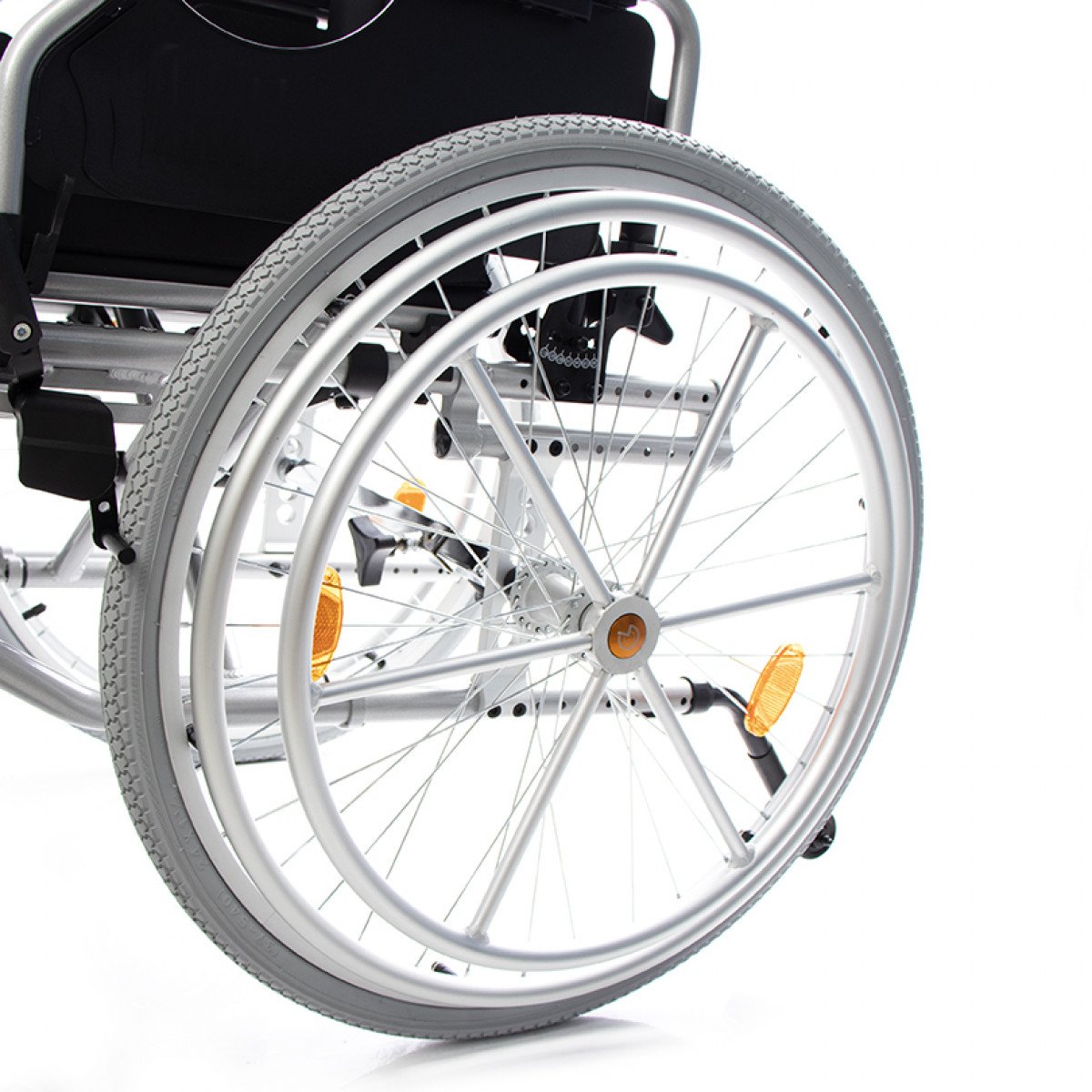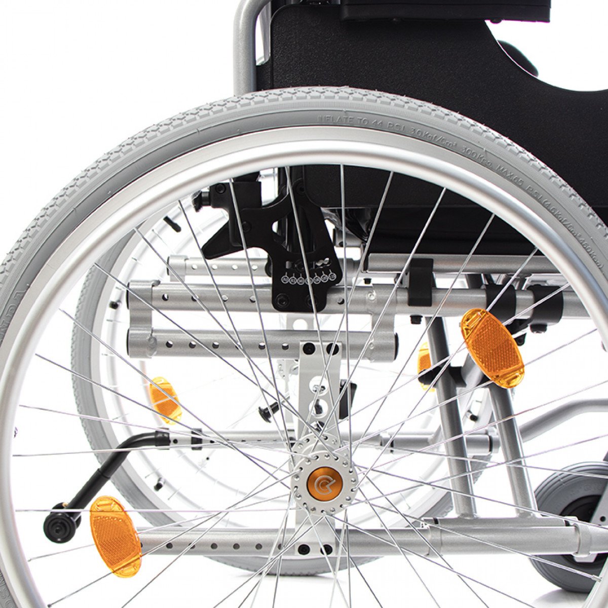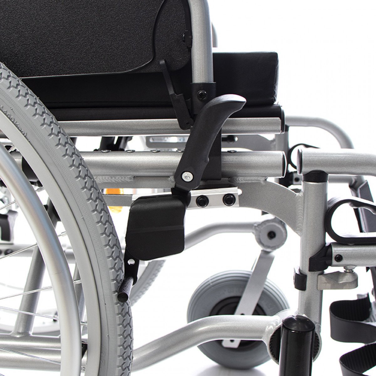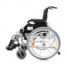Коляска настраивается под индивидуальные потребности: спинка и подножки регулируются по высоте, а приводное колесо с двойным ободом можно установить с удобной стороны. Приводные колёса также регулируются по положению, что помогает точнее настроить посадку. Откидные подлокотники с регулировкой упрощают пересаживание и делают использование более комфортным.