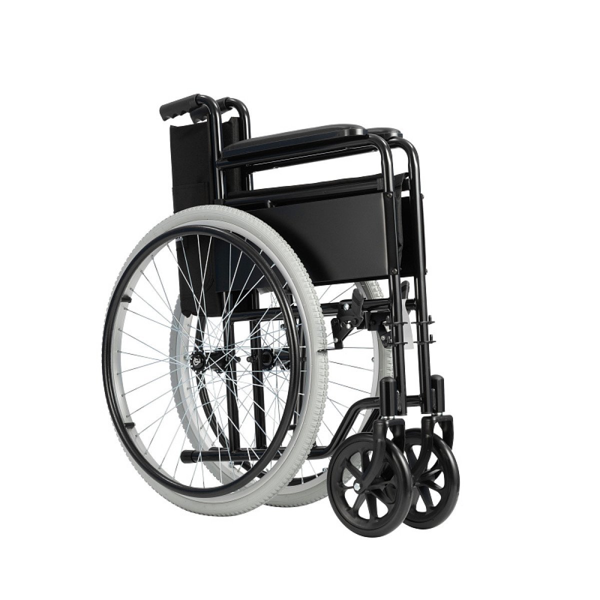 Складная рама облегчает хранение и транспортировку, а быстросъёмные задние колёса с кнопочной фиксацией позволяют быстро уменьшить габариты коляски. Передние колёса цельнолитые, устойчивы к проколам и не требуют обслуживания, задние могут быть как литыми, так и пневматическими — в зависимости от условий использования.