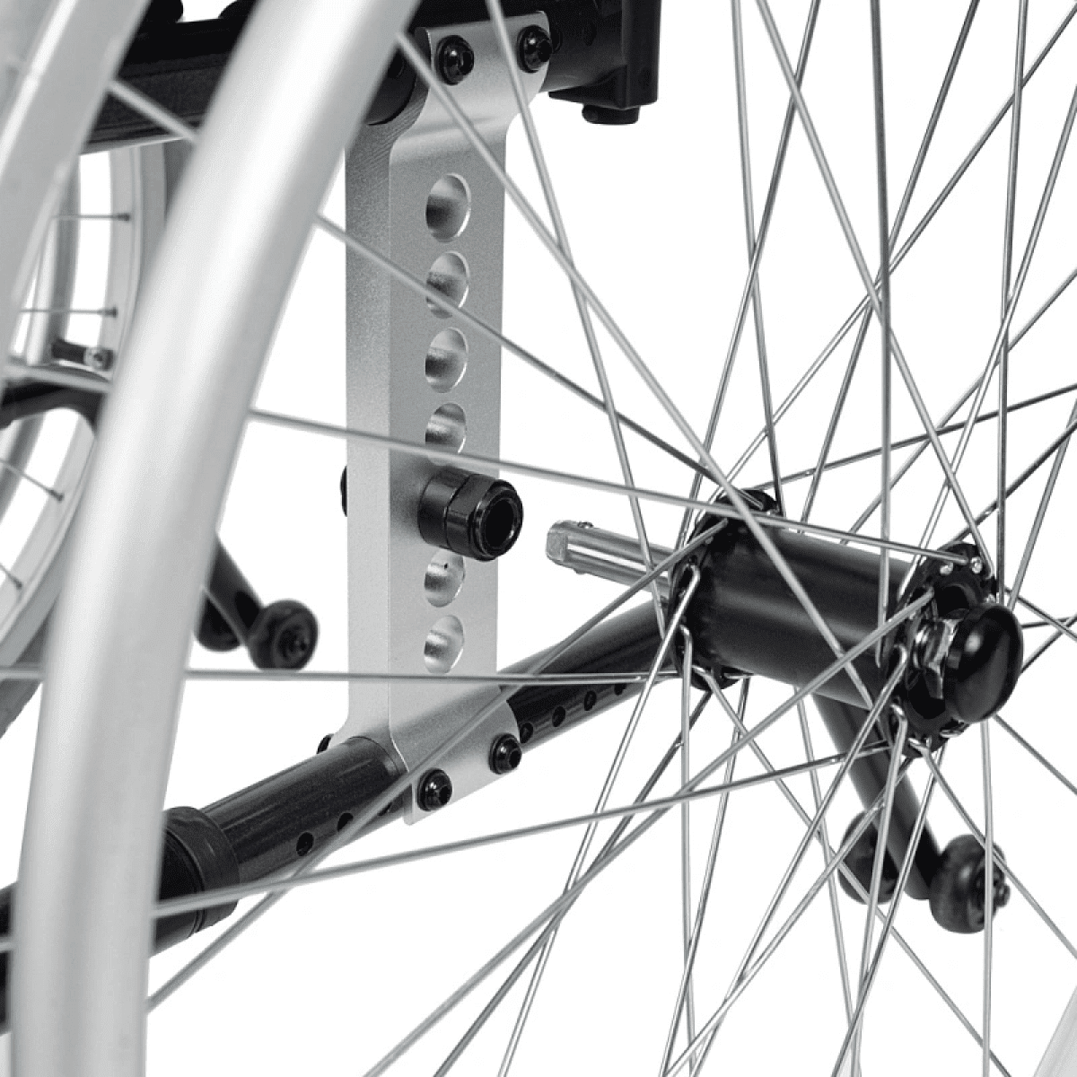 - Быстросъёмные задние колёса с кнопочной фиксацией