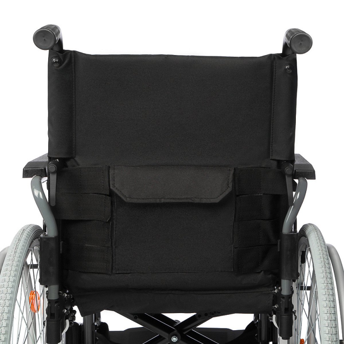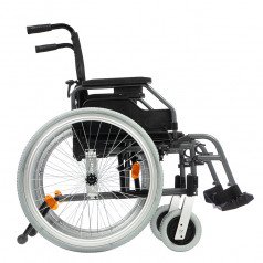 Съёмные и откидные подлокотники, а также откидные подножки облегчают пересаживание. Быстросъёмные задние колёса помогают компактно сложить коляску для перевозки.