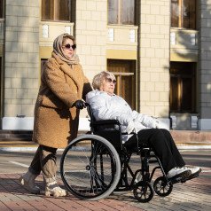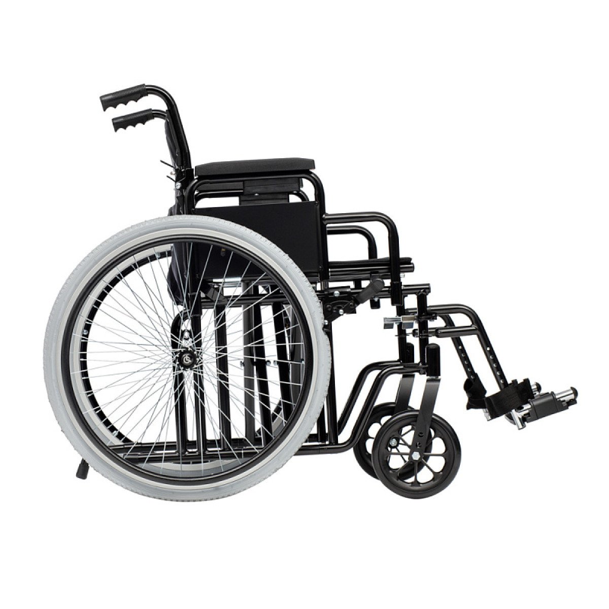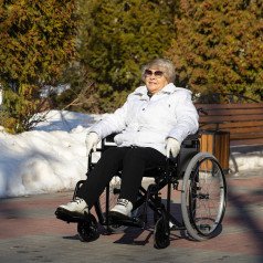 Коляска легко подстраивается под пользователя: подлокотники регулируются по высоте и при необходимости снимаются, подножки — откидные и настраиваются по длине. Передние и задние колёса регулируются по высоте, что помогает адаптировать посадку и управляемость.