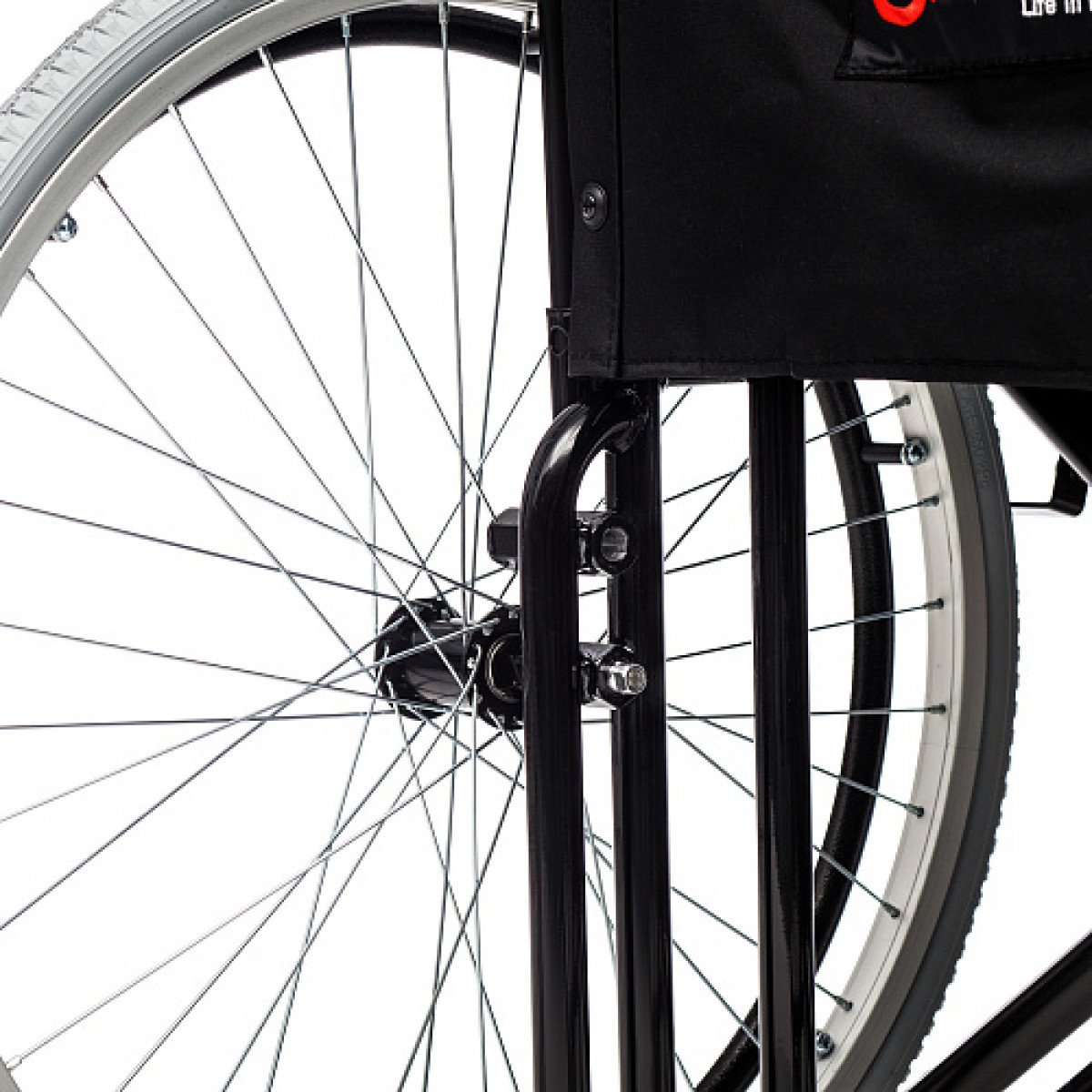 Усиленная стальная рама с двойной крестовиной обеспечивает устойчивость конструкции и выдерживает высокие нагрузки. Благодаря складной раме коляску удобно хранить и перевозить, а быстросъёмные задние колёса упрощают транспортировку.