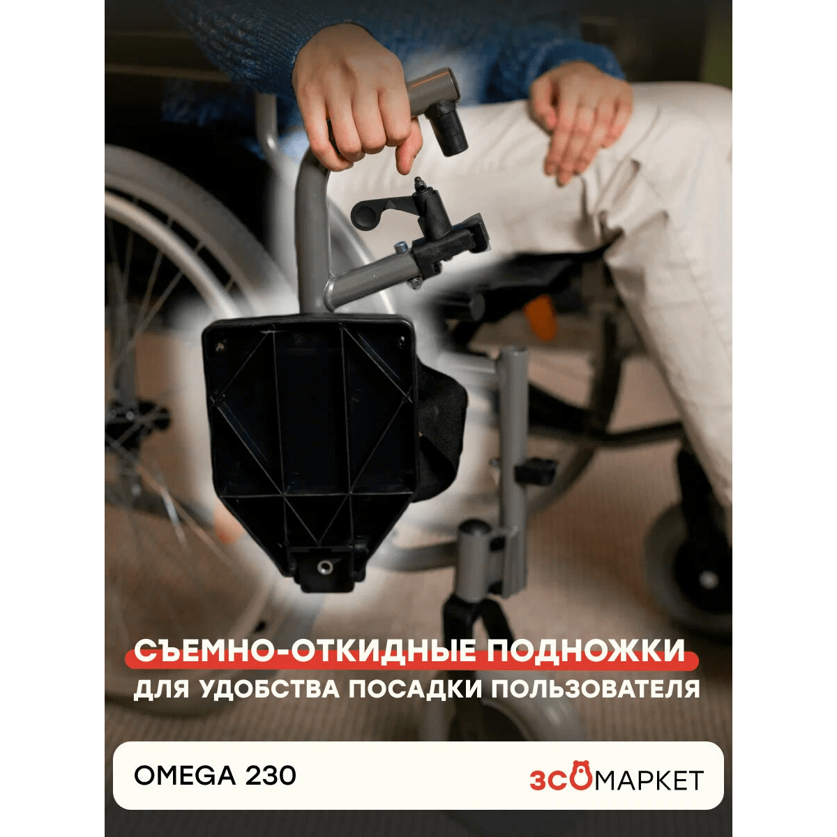 Коляска легко адаптируется под пользователя: подлокотники можно откинуть или снять, они оснащены мягкой опорой и боковой защитой. Подножки регулируются по высоте, снимаются или откидываются, что упрощает пересаживание и делает коляску компактнее при транспортировке.