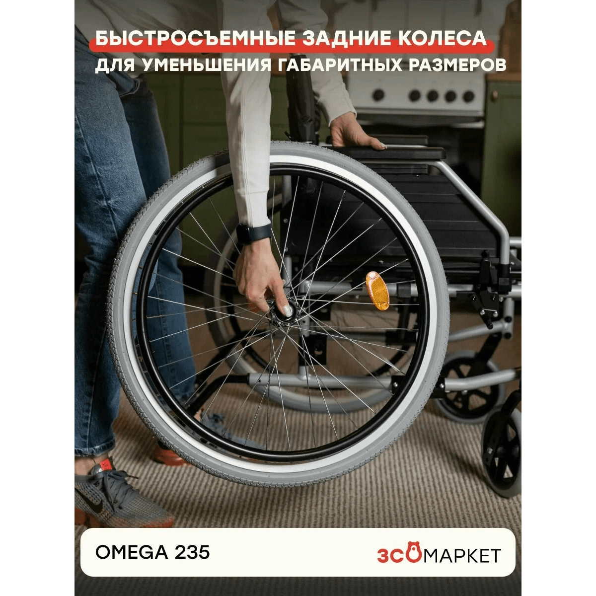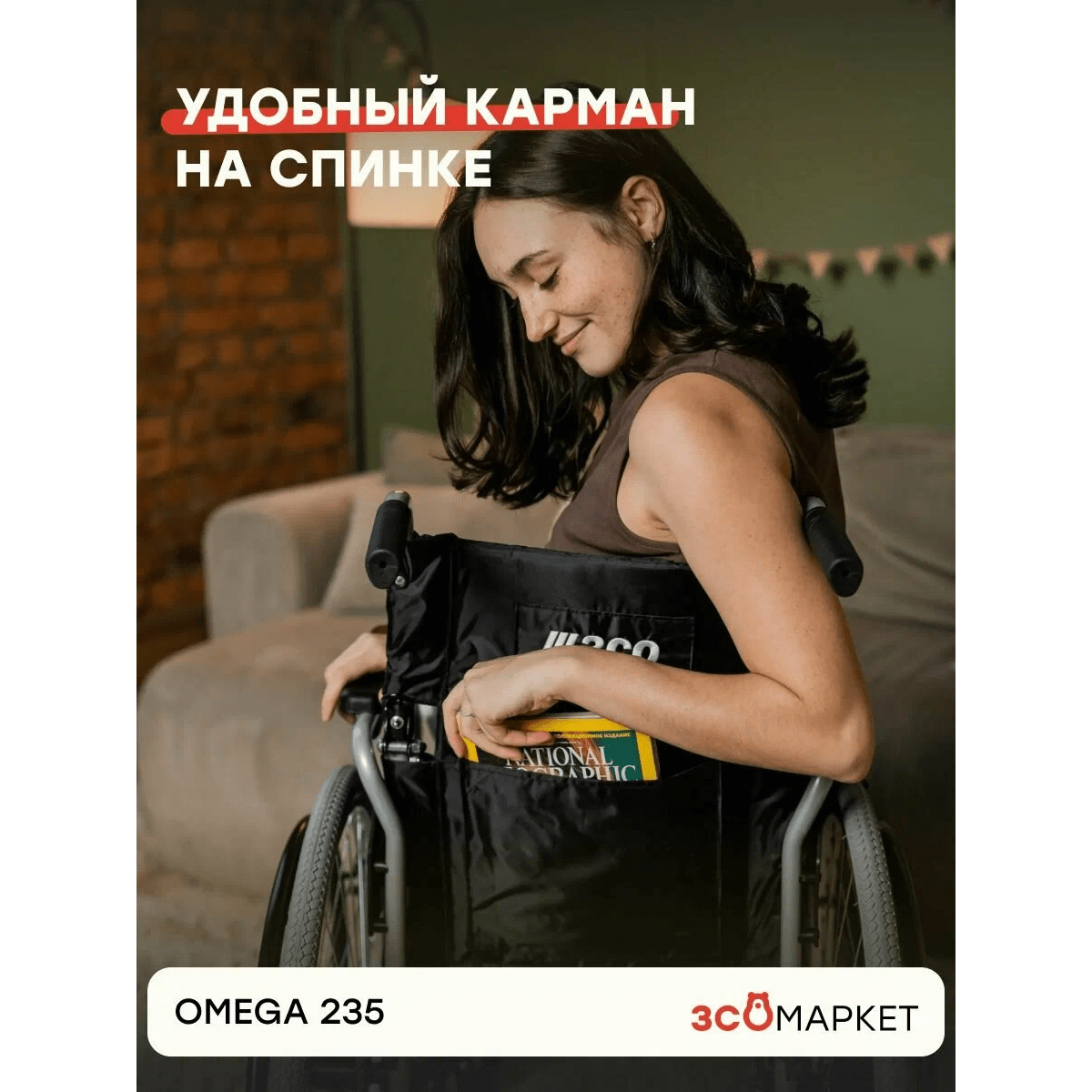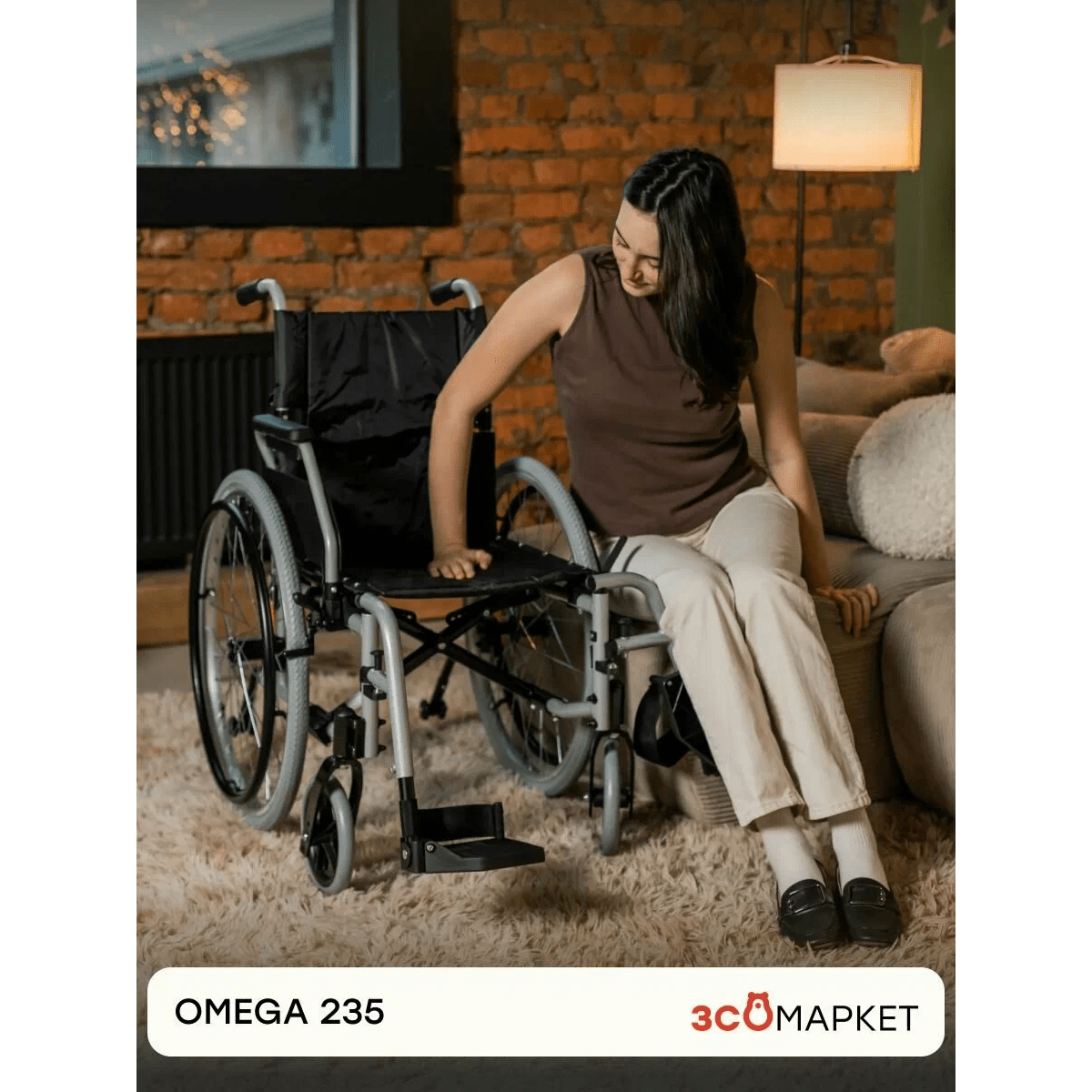 Кресло-коляска ЗСО Omega 235 (Омега 245) — функциональная модель с ручным приводом, которая подходит для дома и улицы. Конструкция сочетает прочную раму, регулируемые элементы и удобное управление, позволяя адаптировать коляску под повседневные задачи пользователя.