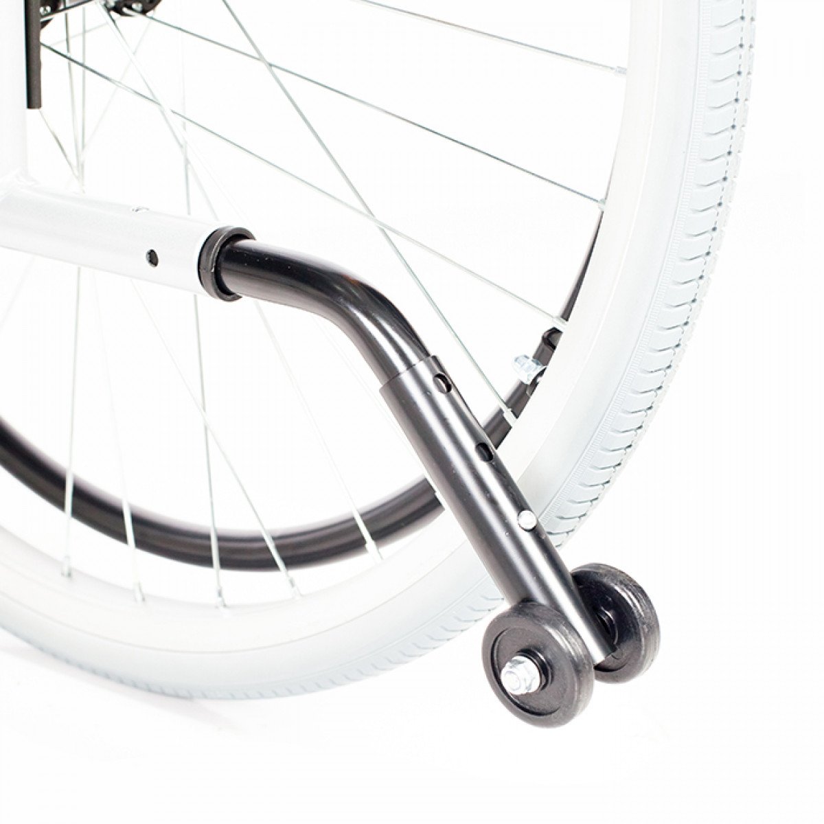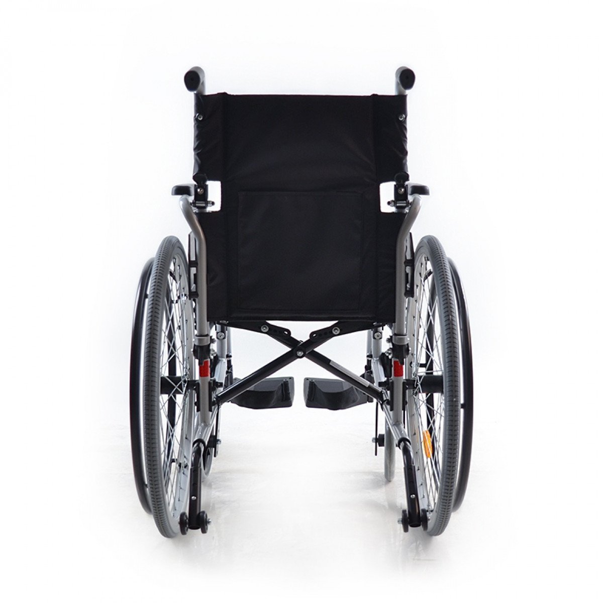 Рама выполнена из металла и рассчитана на длительное использование. Коляска складывается без инструментов, спинка также складывается, уменьшая габариты. Передние колёса — цельнолитые, задние — быстросъёмные, доступны в вариантах с цельнолитыми или пневматическими шинами. Обода с антискользящим покрытием упрощают управление, а стояночные тормоза с регулировкой обеспечивают контроль и безопасность во время остановки.