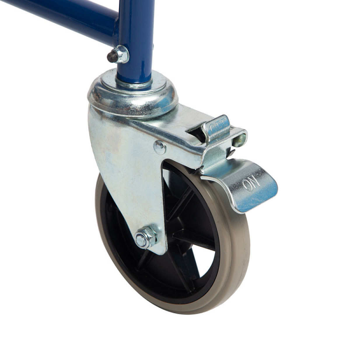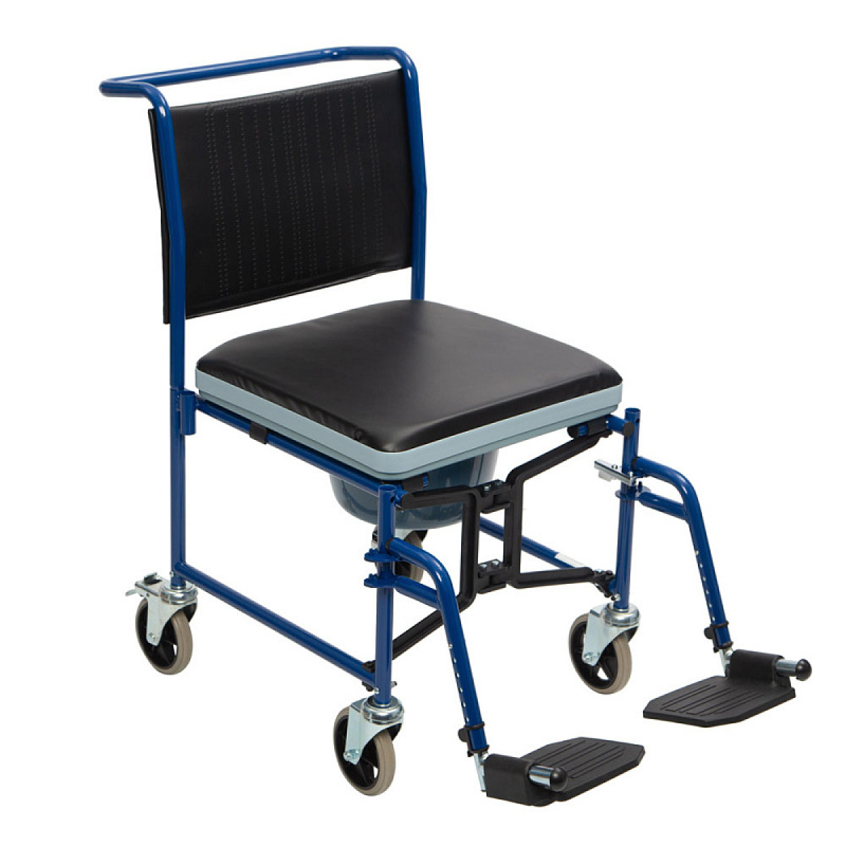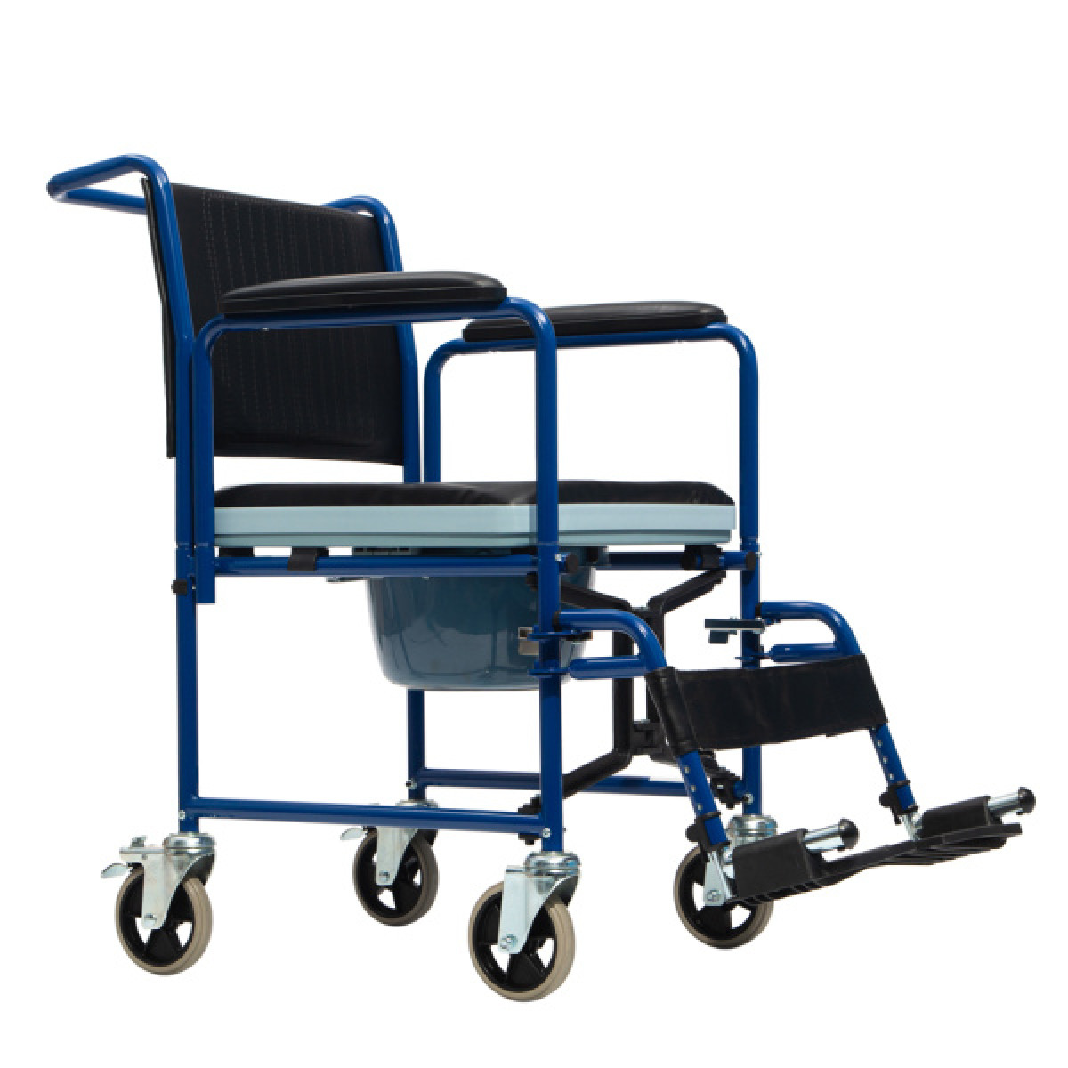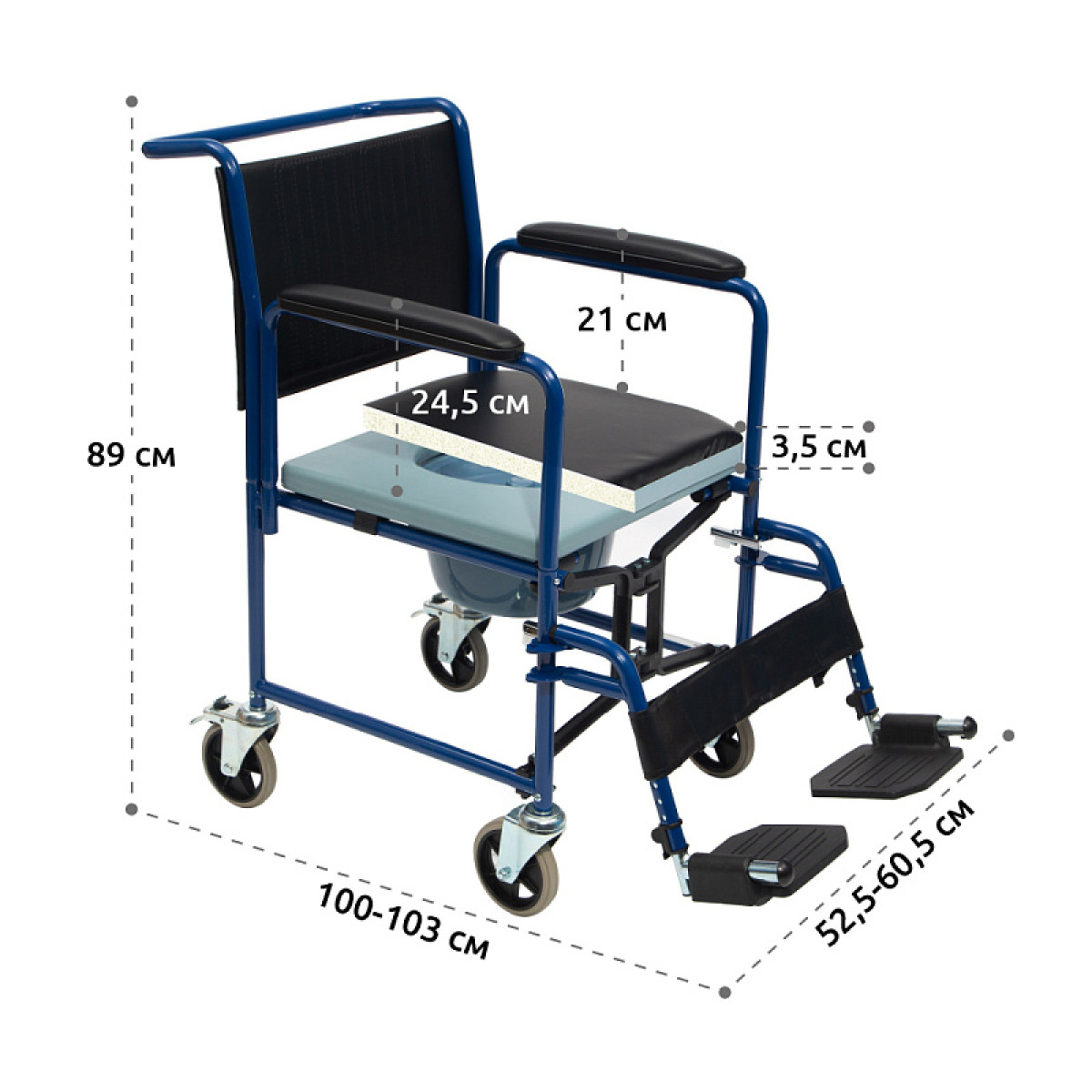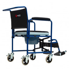 Модель оснащена цельнолитыми колёсами, благодаря чему её легко перемещать по помещению. Для безопасной остановки предусмотрены стояночные тормоза на задних колёсах. Мягкое сиденье и подлокотники с накладками обеспечивают комфорт при ежедневном использовании.