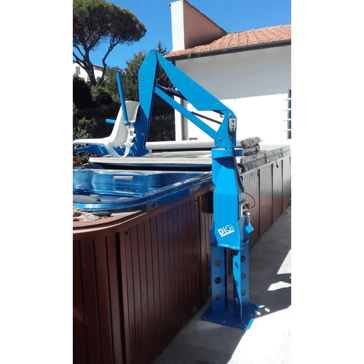 Подъёмник DiGi F100 / F100M (ДиГи Эф100 / Эм100Эм) — надёжное решение для безопасного и комфортного спуска в бассейн людей с ограниченными возможностями. Подходит для бассейнов с бортиком до 80 см и может использоваться как в закрытых, так и в открытых комплексах. Конструкция устойчива к воздействию хлора и морской воды, что делает её долговечной и безопасной.