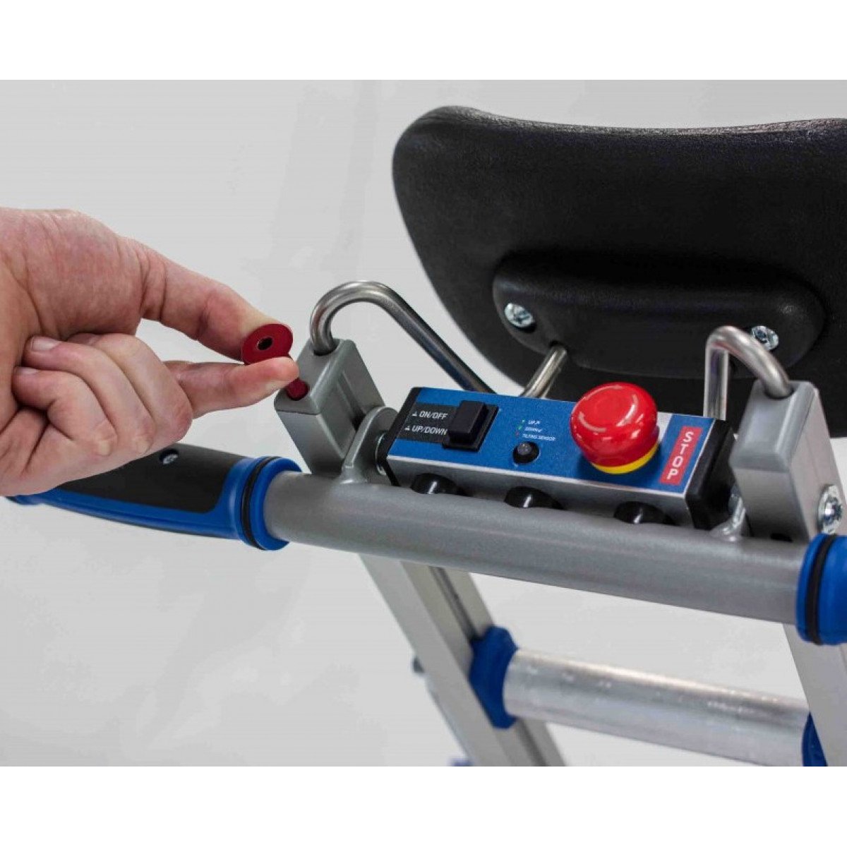 Конструкция выполнена из прочного авиационного алюминия, поэтому подъёмник остаётся лёгким и надёжным одновременно. Все движущиеся механизмы закрыты защитным кожухом, что повышает безопасность и защищает устройство при ежедневном использовании. PTR 160 обеспечивает стабильное и плавное движение без рывков при подъёме и спуске.