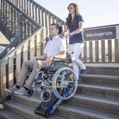SANO PT PTR 160 (Сано ПиТи ПиТиАр 160) PTR 160 — это компактный гусеничный подъёмник, который помогает безопасно поднимать и спускать человека в инвалидной коляске по лестнице с участием сопровождающего. Он подходит для ситуаций, где нет пандусов и стационарных подъёмных платформ.