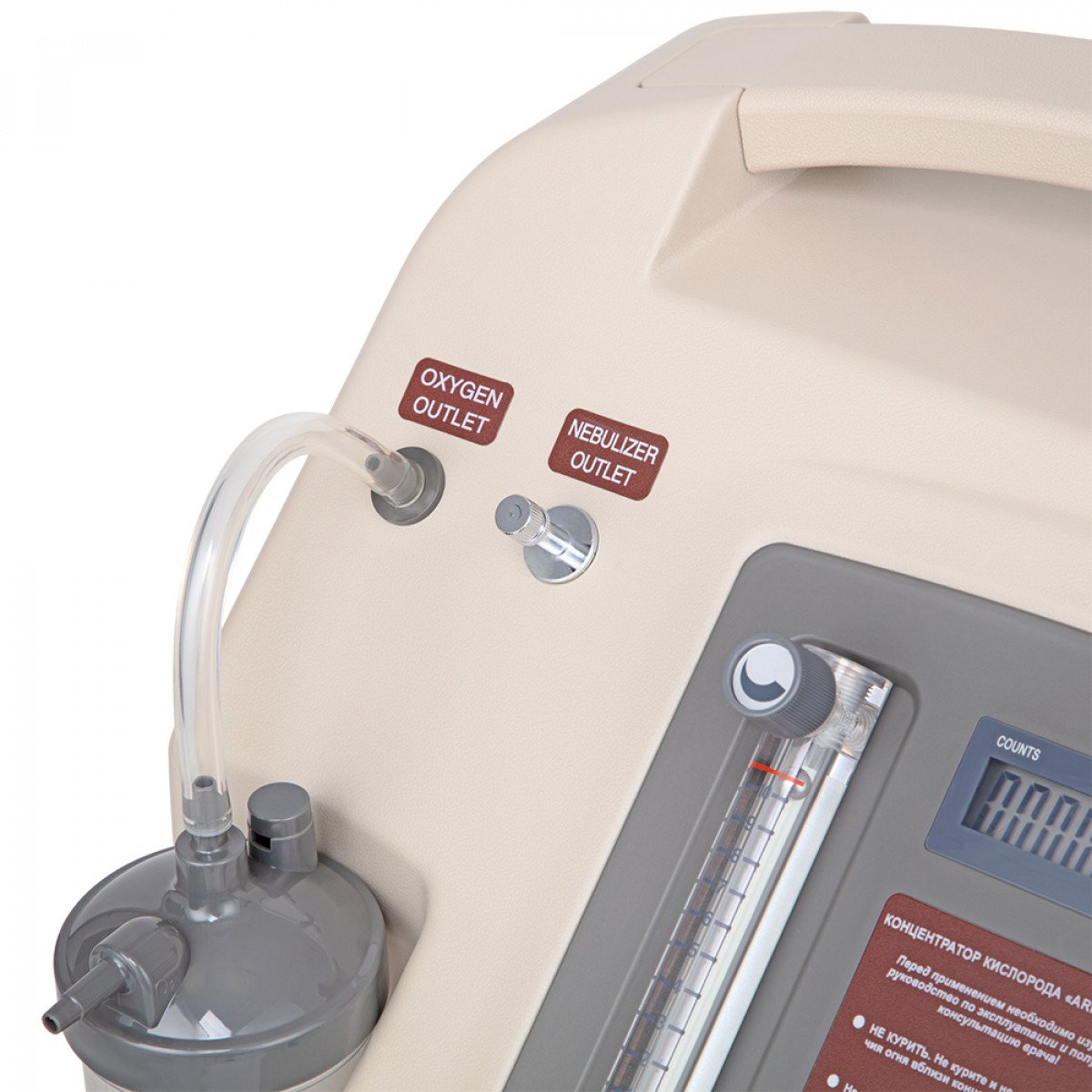 Главное конструктивное преимущество модели — наличие встроенного ингалятора. Это позволяет применять аппарат не только для классической кислородотерапии и ароматерапии, но и для ингаляционного введения лекарственных препаратов, что делает его незаменимым в лечении заболеваний органов дыхания. Аппарат обладает производительностью до 10 литров в минуту, прошел клинические испытания и может использоваться в качестве основного или резервного источника кислорода.