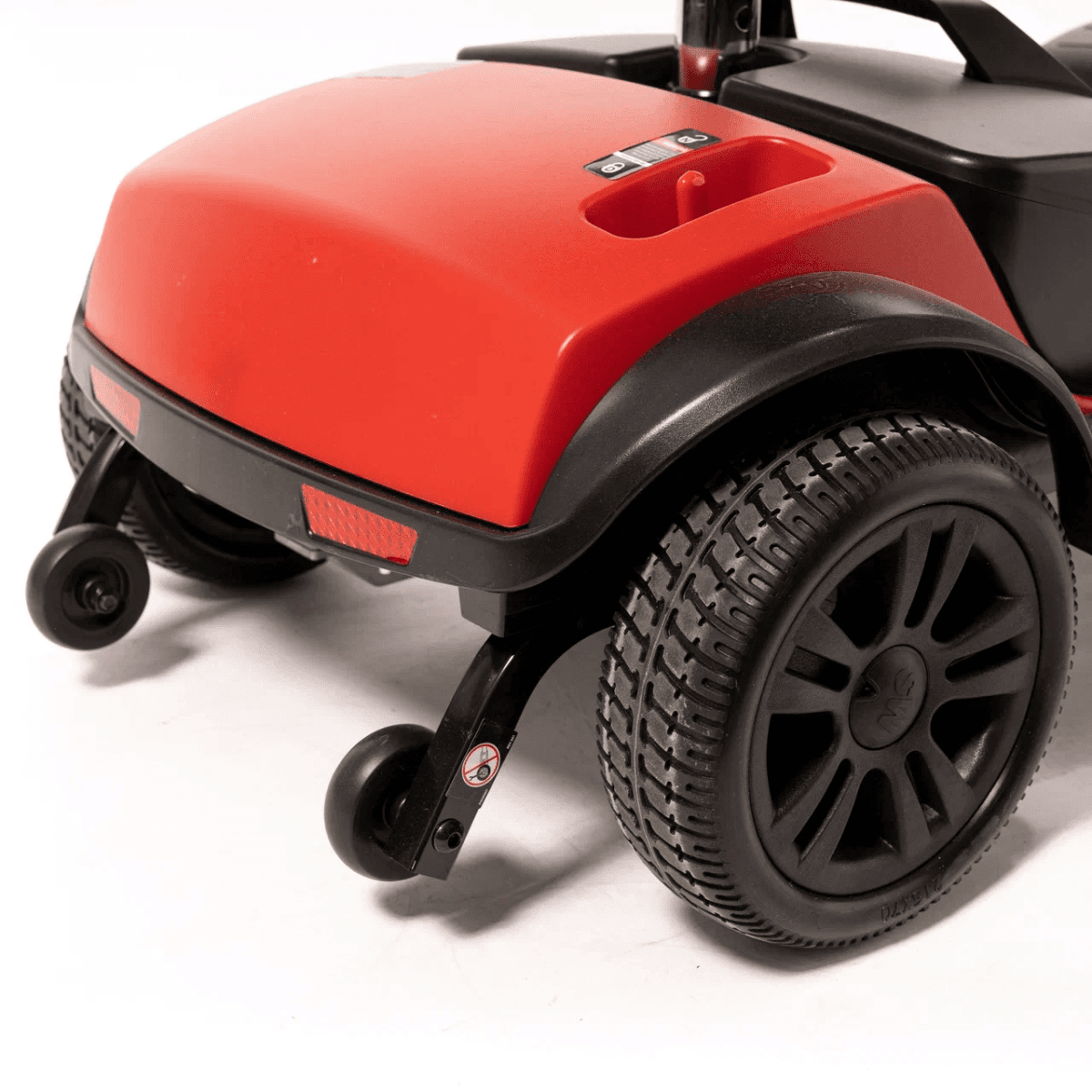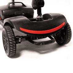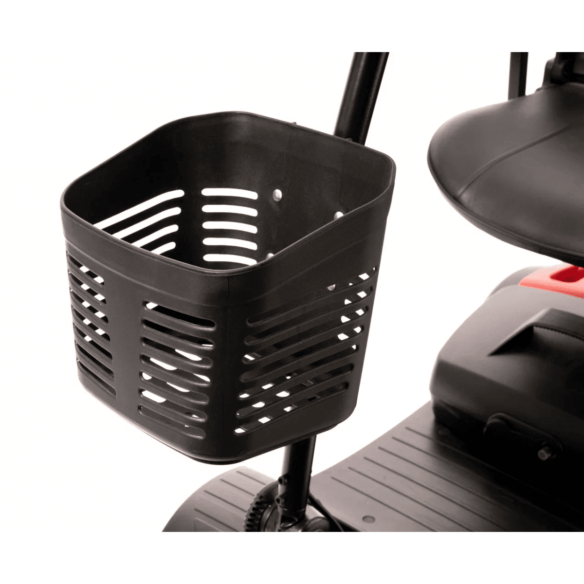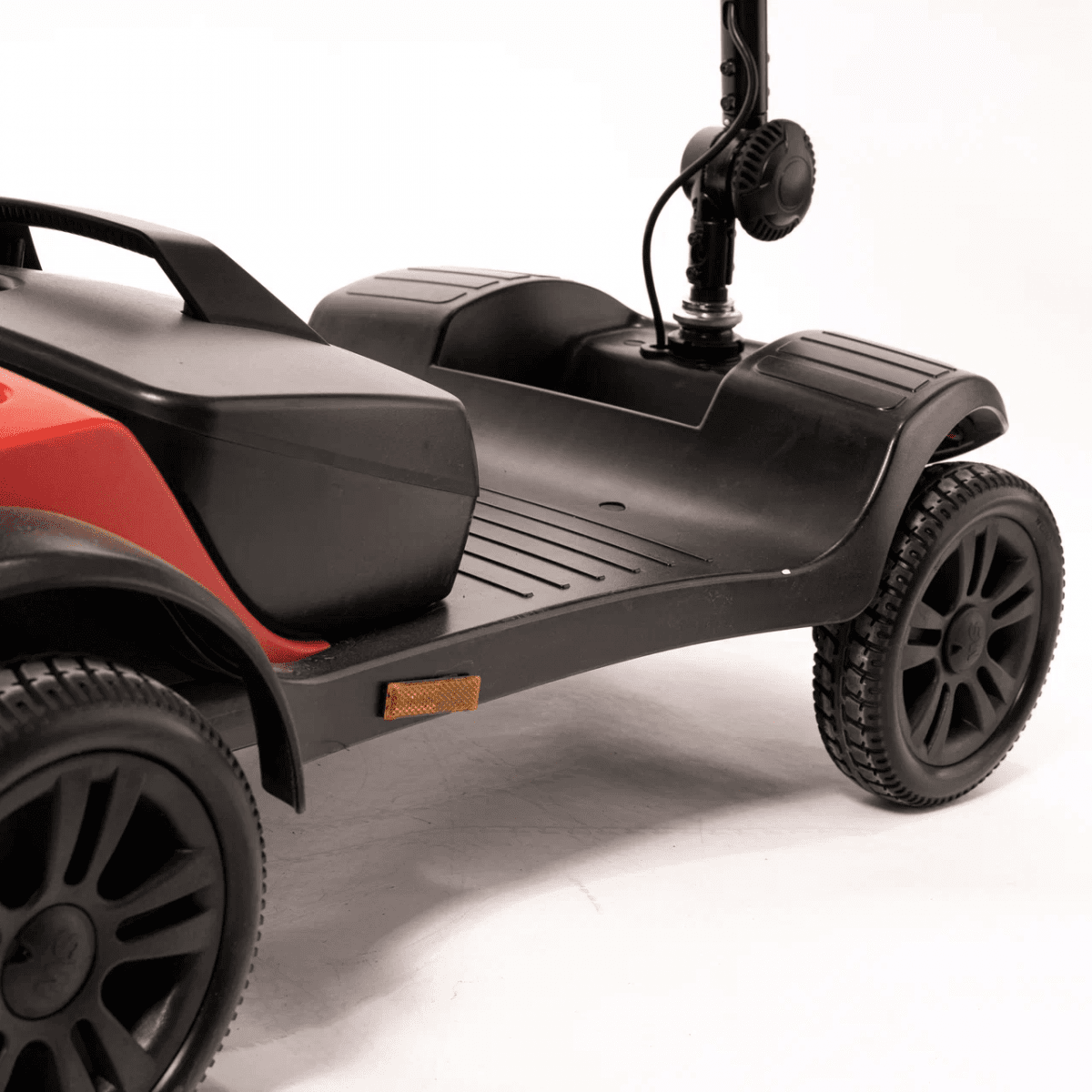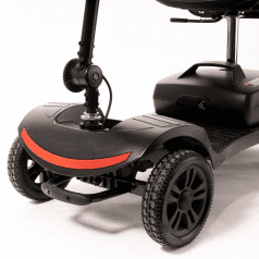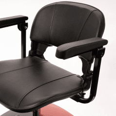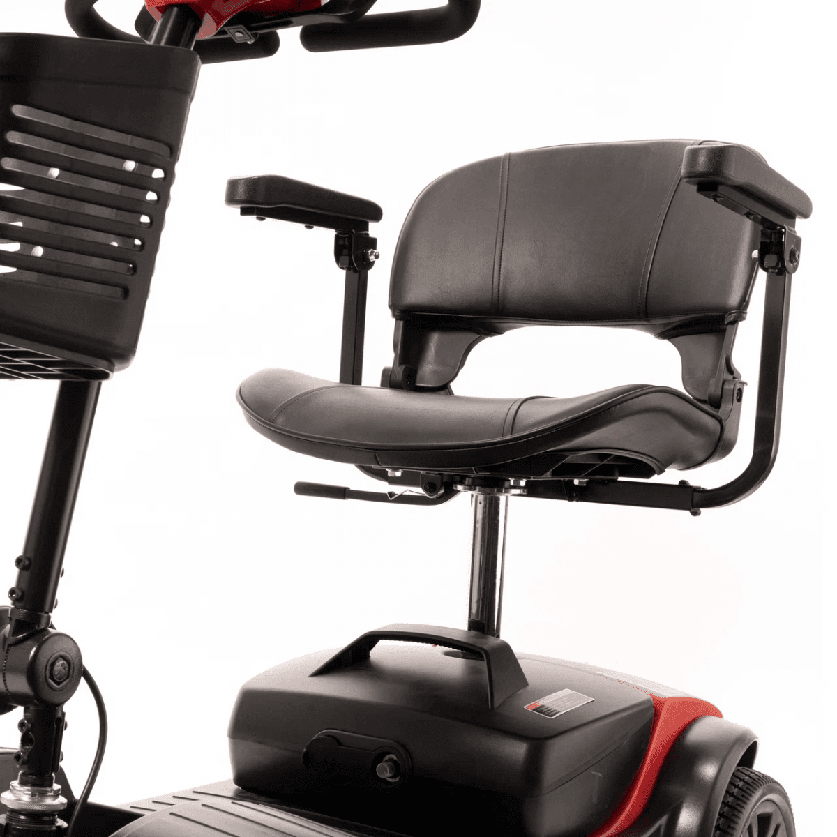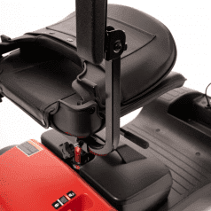 Скутер оснащён удобным рулём с панелью управления, где расположены ключевые функции: переключатель «включить/выключить», индикатор заряда батареи, регулятор скорости, звуковой сигнал и акселераторы. Поворотное сиденье с откидывающимися подлокотниками гарантирует дополнительный комфорт при посадке.