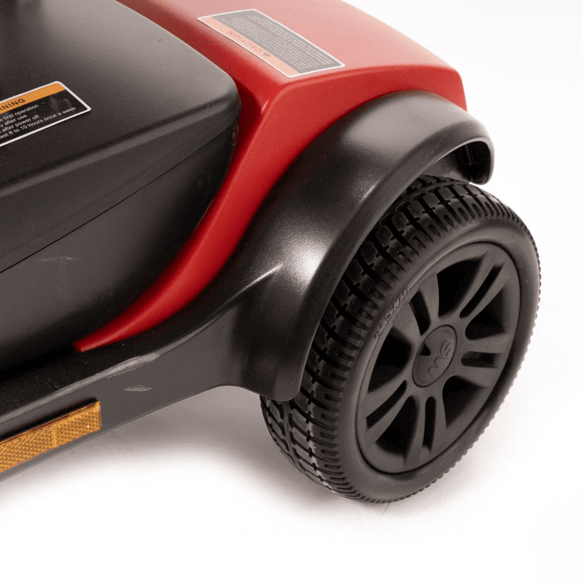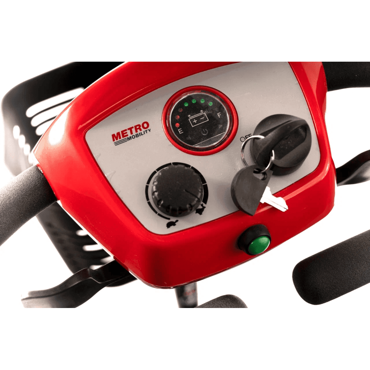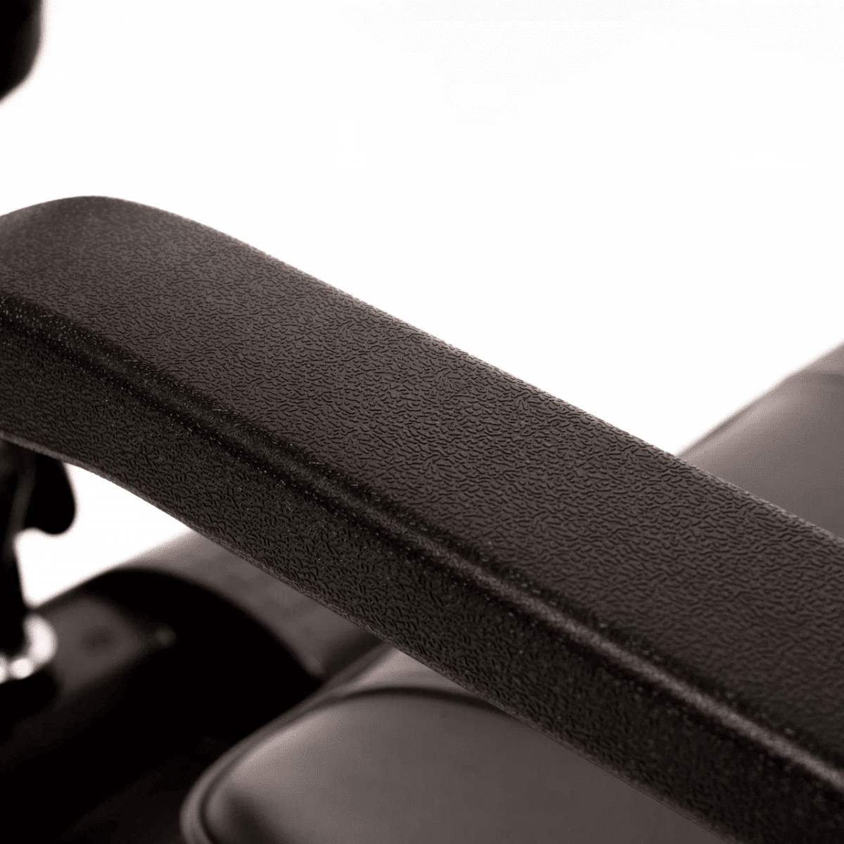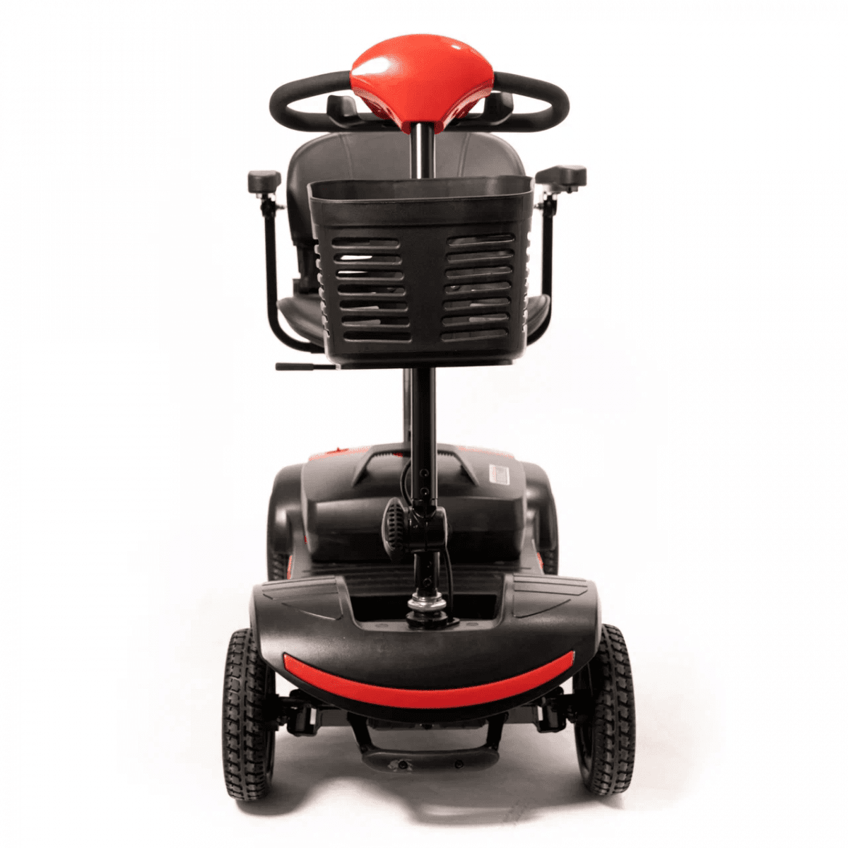 Скутер оснащён удобным рулём с панелью управления, где расположены ключевые функции: переключатель «включить/выключить», индикатор заряда батареи, регулятор скорости, звуковой сигнал и акселераторы. Поворотное сиденье с откидывающимися подлокотниками гарантирует дополнительный комфорт при посадке.