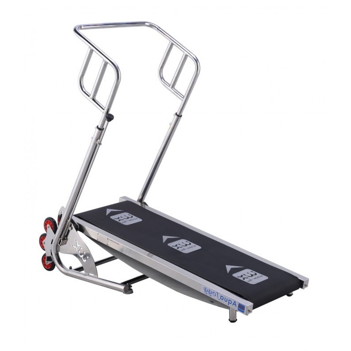 Дорожка проста в использовании: уровень нагрузки меняется за счёт регулировки натяжения полотна. Система складывания Easy Push позволяет быстро привести тренажёр в рабочее положение и компактно убрать его после занятия. Съёмные поручни обеспечивают дополнительную опору и безопасность, особенно для пожилых и ослабленных пользователей. Подходит для регулярного применения в частных и общественных бассейнах.