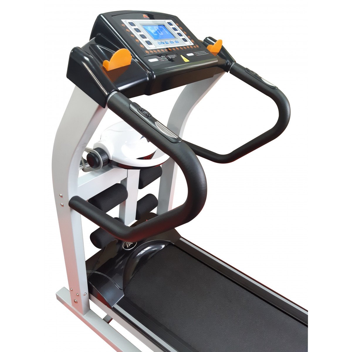 Беговая дорожка American Motion Fitness 8212 (Американ Моушен Фитнес 8212) с встроенным массажером и функцией прокачки пресса – это многофункциональный тренажер для проработки различных групп мышц, укрепления корпуса и улучшения фигуры. Встроенный массажер помогает подтянуть ягодицы и бедра, а стойка для прокачки пресса укрепляет как прямые, так и косые мышцы, а также мышцы спины, создавая прочный мышечный корсет.