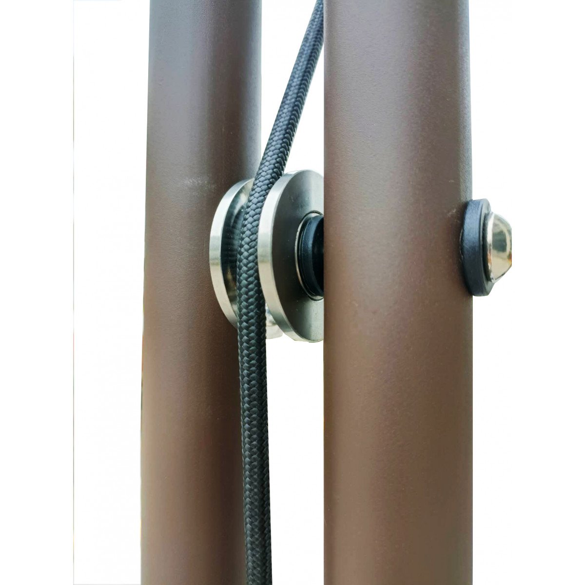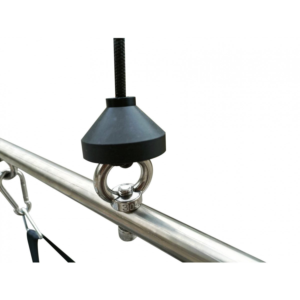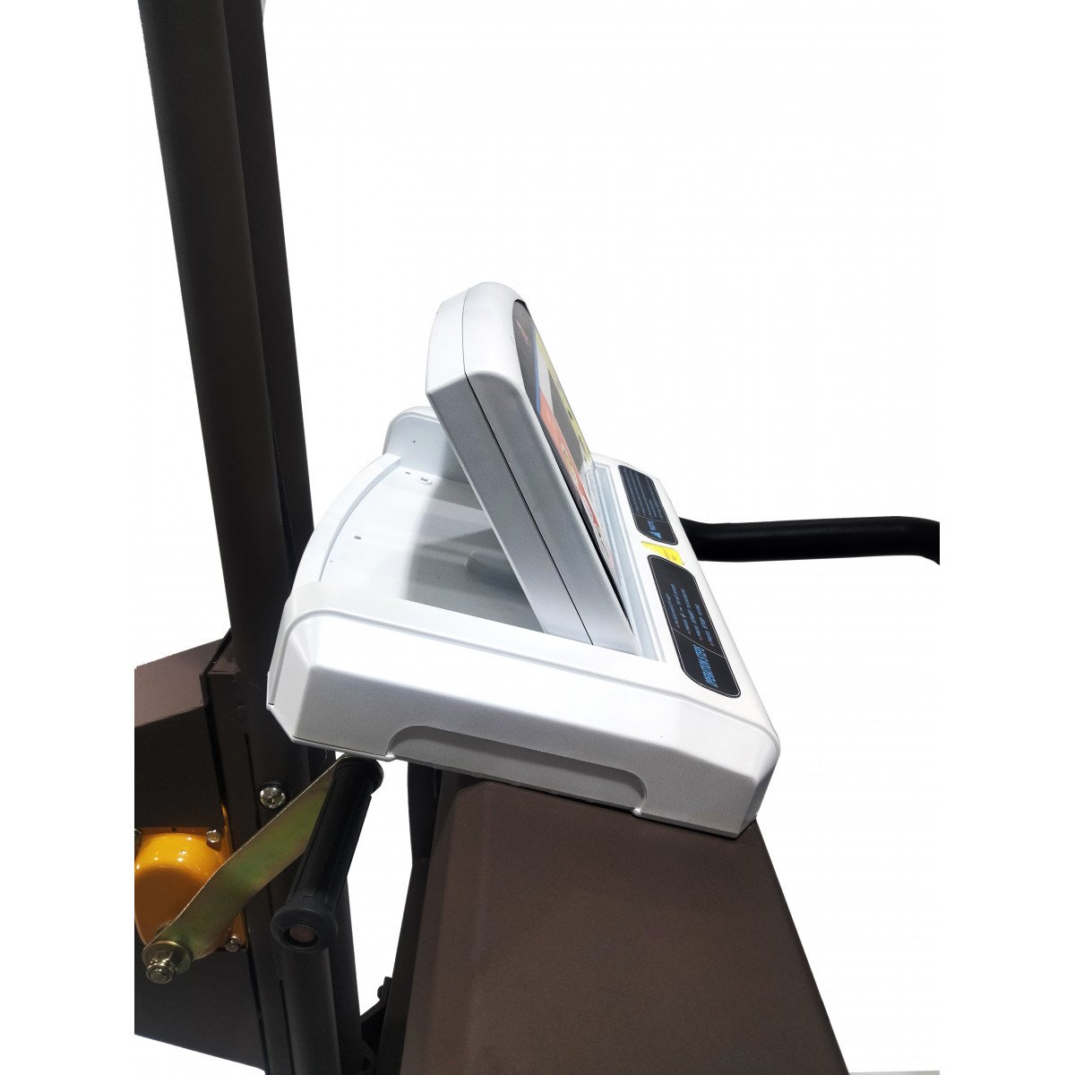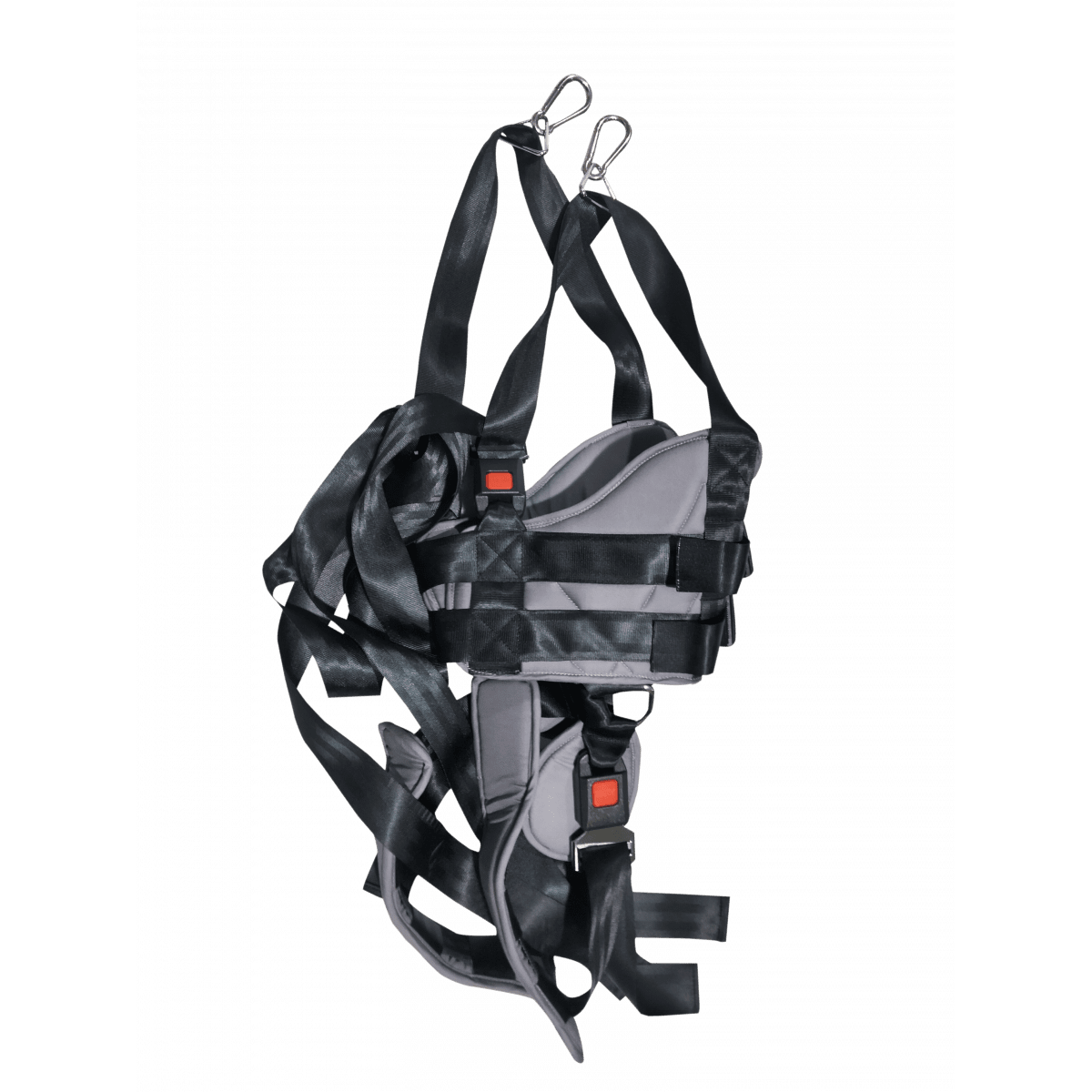 Регулировка подвеса осуществляется вручную — достаточно повернуть рукоятку. Крепление жилета можно установить на высоте 100–170 см от бегового полотна, что удобно для пользователей разного роста и возраста. При необходимости тренировки проводятся и без подвеса: мощный мотор выдерживает нагрузку до 120 кг, сохраняя плавность и устойчивость работы.